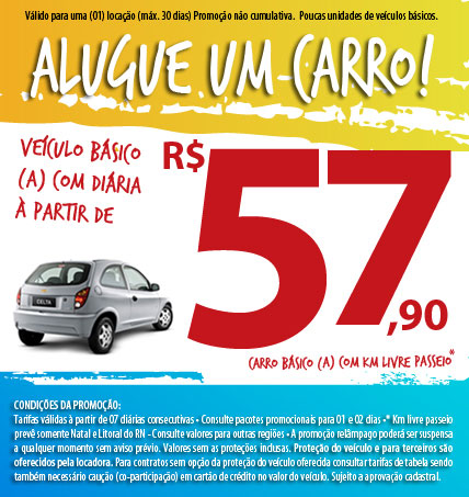Está promoção poderá ser suspensa sem prévio aviso. Fotos meramente ilustrativas. Nos resguardamos de qualquer erro de digitação. Valores sem pacote de proteção incluso. Veículo apenas da Categoria A. SE BEBER NÃO DIRIJA!